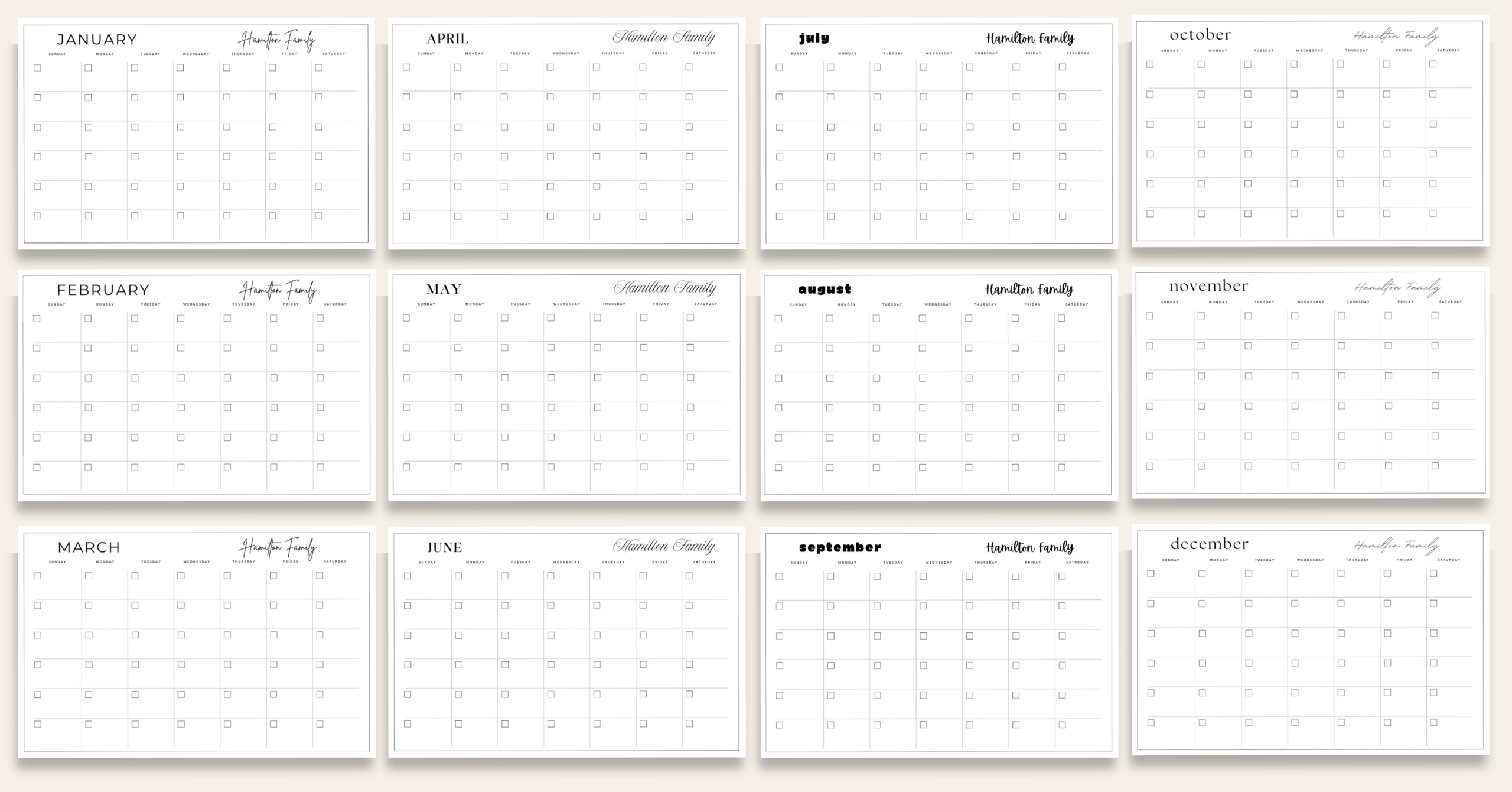 Personalize it with your family name, choose from four curated font styles, and print in the size that fits your space. Made to live in your kitchen, office, or command center. Because when your calendar is clear, your whole year feels clearer!